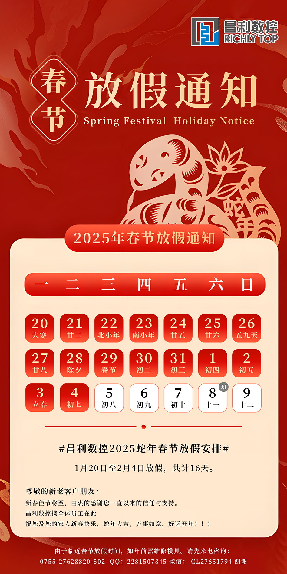祝您及您的家人新春快樂,蛇年大吉,萬事如意,好運開年!!!